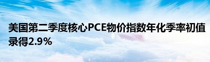 美国第二季度核心PCE物价指数年化季率初值录得2.9%