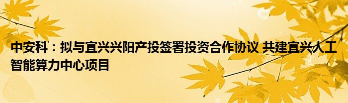 中安科:拟与宜兴兴阳产投签署投资合作协议 共建宜兴人工智能算力中心项目