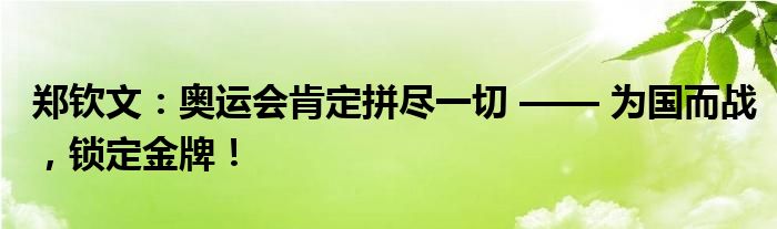 郑钦文:奥运会肯定拼尽一切 —— 为国而战,锁定金牌!