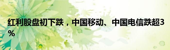 红利股盘初下跌,中国移动、中国电信跌超3%