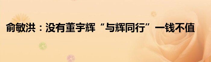 俞敏洪:没有董宇辉“与辉同行”一钱不值