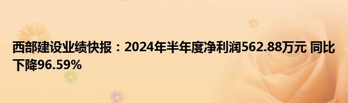 西部建设业绩快报:2024年半年度净利润562.88万元 同比下降96.59%