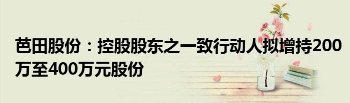 芭田股份:控股股东之一致行动人拟增持200万至400万元股份