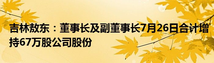 吉林敖东:董事长及副董事长7月26日合计增持67万股公司股份