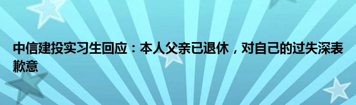 中信建投证券实习生:本人父亲已退休,对自己的过失深表歉意