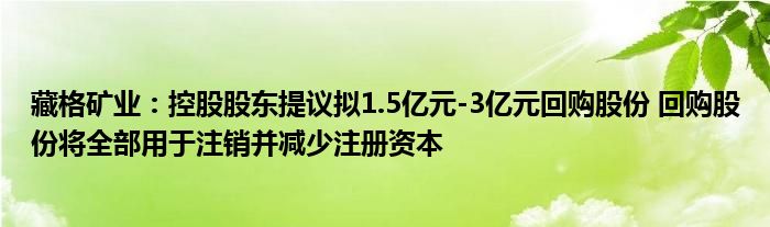 藏格矿业:控股股东提议拟1.5亿元-3亿元回购股份 回购股份将全部用于注销并减少注册资本