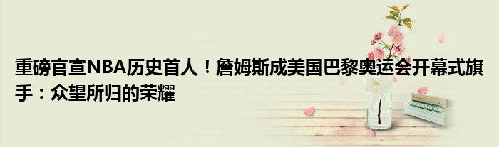 重磅官宣NBA历史首人!詹姆斯成美国巴黎奥运会开幕式旗手:众望所归的荣耀