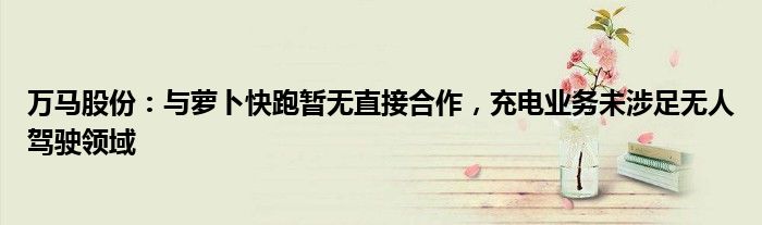万马股份:与萝卜快跑暂无直接合作,充电业务未涉足无人驾驶领域