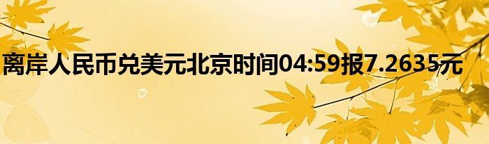 离岸人民币(CNH)兑美元北京时间04:59报7.2635元,较周四纽约尾盘跌233点,盘中整体交投于7.2335-7.2664元区间。