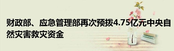 财政部、应急管理部再次预拨4.75亿元中央自然灾害救灾资金