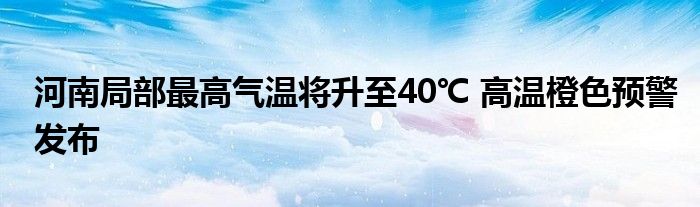 河南局部最高气温将升至40℃ 高温橙色预警发布