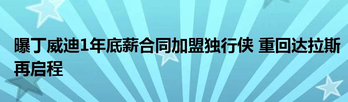 曝丁威迪1年底薪合同加盟独行侠 重回达拉斯再启程