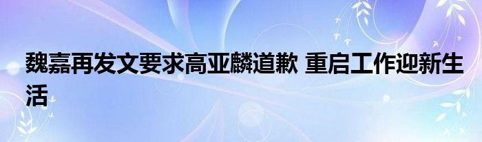 魏嘉再发文要求高亚麟道歉 重启工作迎新生活