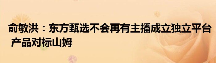 俞敏洪:东方甄选不会再有主播成立独立平台 产品对标山姆