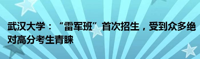 武汉大学:“雷军班”首次招生,受到众多绝对高分考生青睐