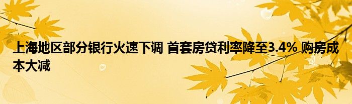 上海地区部分银行火速下调 首套房贷利率降至3.4% 购房成本大减