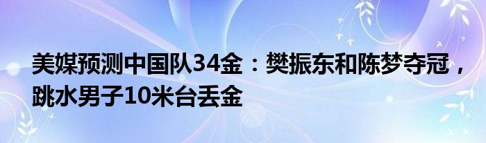 美媒预测中国队34金:樊振东和陈梦夺冠,跳水男子10米台丢金。