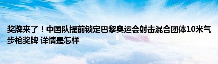 【奖牌来了!中国队提前锁定巴黎奥运会射击混合团体10米气步枪奖牌】大家可以一起来了解一下这是什么情况!