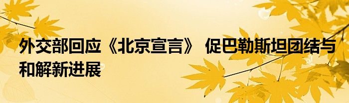 中国表达了对巴勒斯坦内部和解及最终实现民族团结与独立建国的支持,并承诺将继续与其他国家共同努力,推动这一目标的实现。外交部回应《北京宣言》!