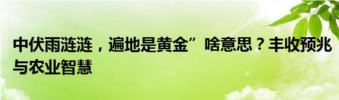 “中伏雨涟涟,遍地是黄金” 啥意思?