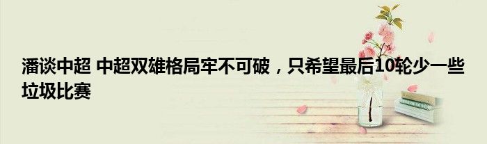 潘谈中超 中超双雄格局牢不可破,只希望最后10轮少一些垃圾比赛。