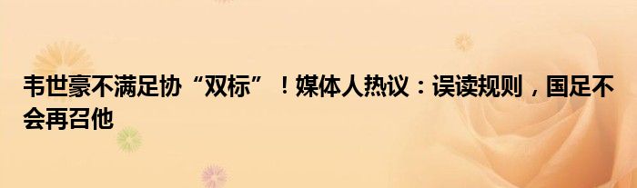 韦世豪不满足协“双标”!媒体人热议:误读规则,国足不会再召他