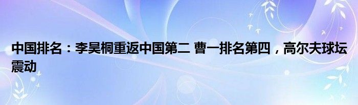 中国排名:李昊桐重返中国第二 曹一排名第四,高尔夫球坛震动
