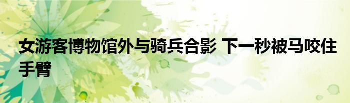 女游客博物馆外与骑兵合影 下一秒被马咬住手臂