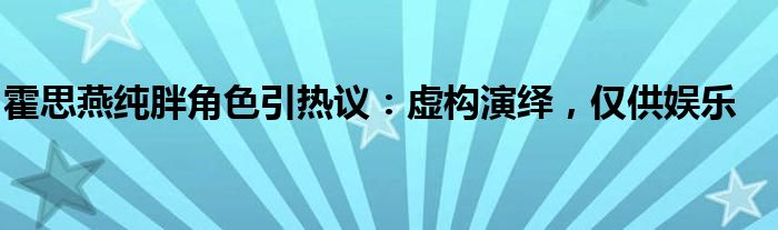 霍思燕纯胖角色引热议:虚构演绎,仅供娱乐