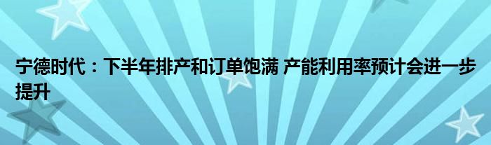 宁德时代:下半年排产和订单饱满 产能利用率预计会进一步提升