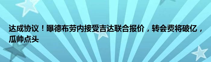 达成协议!曝德布劳内接受吉达联合报价,转会费将破亿,瓜帅点头