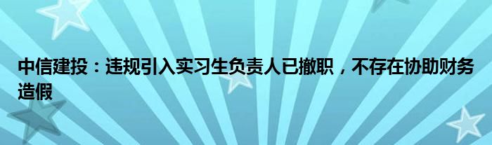 中信建投:违规引入实习生负责人已撤职,不存在协助财务造假