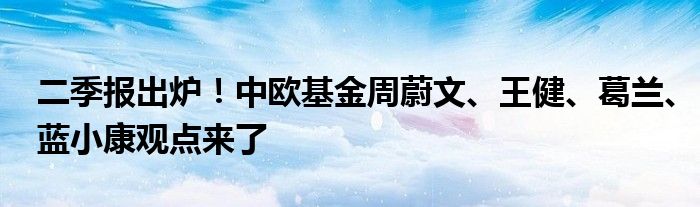 二季报出炉!中欧基金周蔚文、王健、葛兰、蓝小康观点来了
