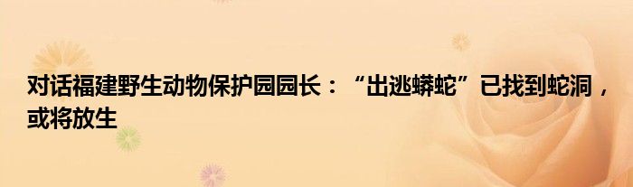 对话福建野生动物保护园园长:“出逃蟒蛇”已找到蛇洞,或将放生