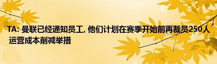 TA: 曼联已经通知员工, 他们计划在赛季开始前再裁员250人 运营成本削减举措