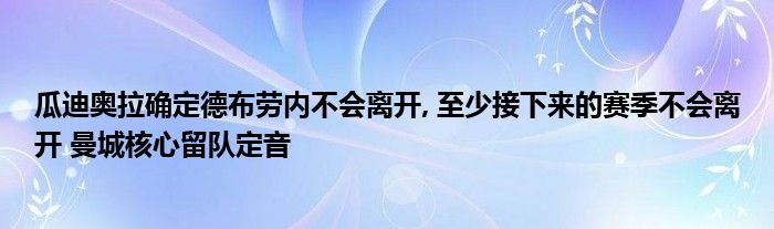 瓜迪奥拉确定德布劳内不会离开, 至少接下来的赛季不会离开 曼城核心留队定音