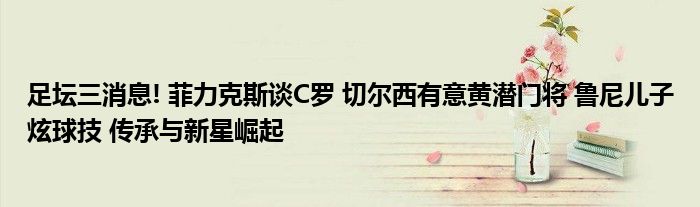 足坛三消息! 菲力克斯谈C罗 切尔西有意黄潜门将 鲁尼儿子炫球技 传承与新星崛起
