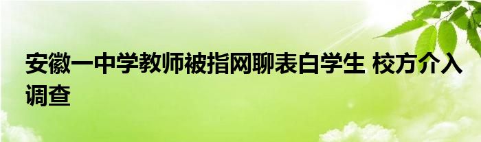 安徽一中学教师被指网聊表白学生 校方介入调查