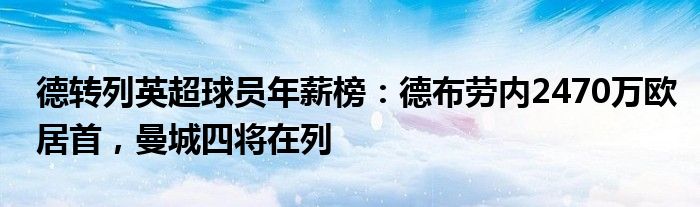 德转列英超球员年薪榜:德布劳内2470万欧居首,曼城四将在列