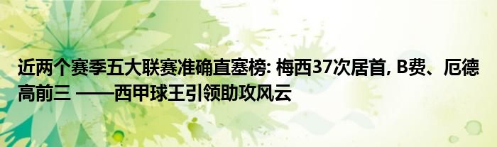 近两个赛季五大联赛准确直塞榜: 梅西37次居首, B费、厄德高前三 ——西甲球王引领助攻风云