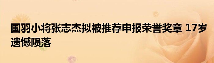 国羽小将张志杰拟被推荐申报荣誉奖章 17岁遗憾陨落