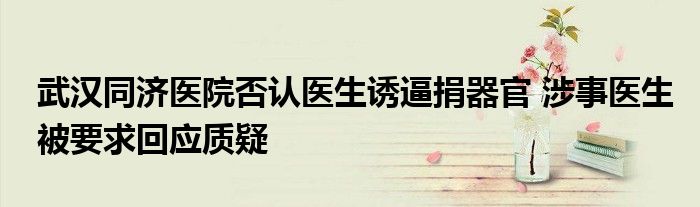 武汉同济医院否认医生诱逼捐器官 涉事医生被要求回应质疑