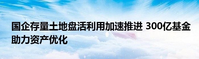 国企存量土地盘活利用加速推进 300亿基金助力资产优化