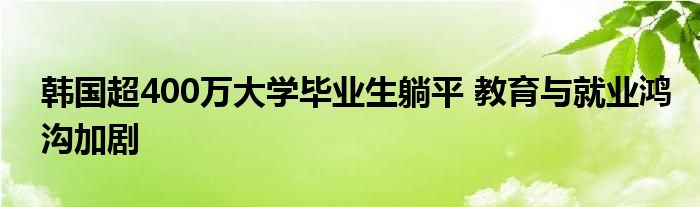 韩国超400万大学毕业生躺平 教育与就业鸿沟加剧