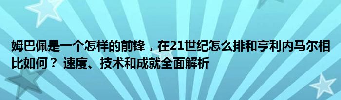 姆巴佩是一个怎样的前锋,在21世纪怎么排和亨利内马尔相比如何? 速度、技术和成就全面解析