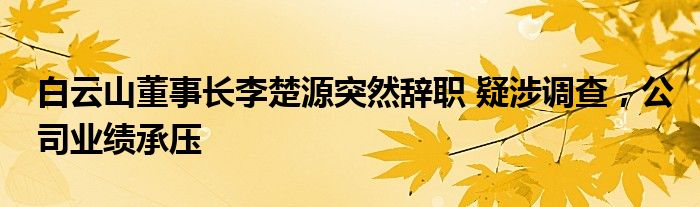 7月22日晚,白云山官方发布消息,称其董事长李楚源基于个人缘由,已递交辞呈,放弃公司董事长及一系列相关职务,并且不再于公司内担任任何角色。副董事长杨军暂时接替董事长职责。有传闻提及,李楚源可能正接受广东省相关部门的调查,但该消息未经官方证实。