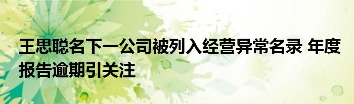 王思聪名下一公司被列入经营异常名录 年度报告逾期引关注