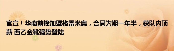 官宣!华裔前锋加盟格雷米奥,合同为期一年半,获队内顶薪 西乙金靴强势登陆