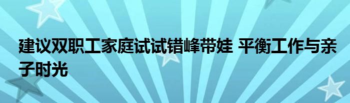 建议双职工家庭试试错峰带娃 平衡工作与亲子时光