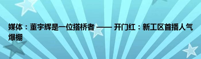 媒体:董宇辉是一位搭桥者 —— 开门红:新工区首播人气爆棚